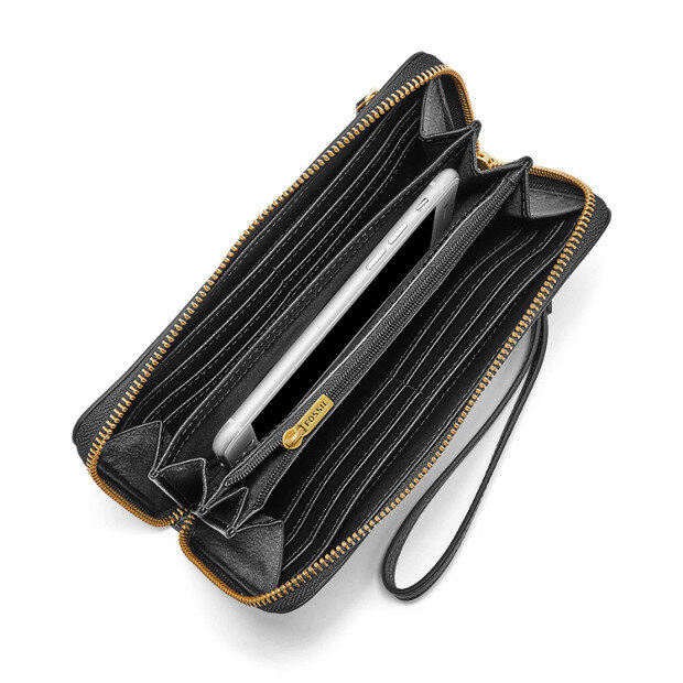 Interior Details: 1 Zipper Pocket, 2 Bill Compartments, 3 Gusseted Pockets, 12 Credit Card Slots